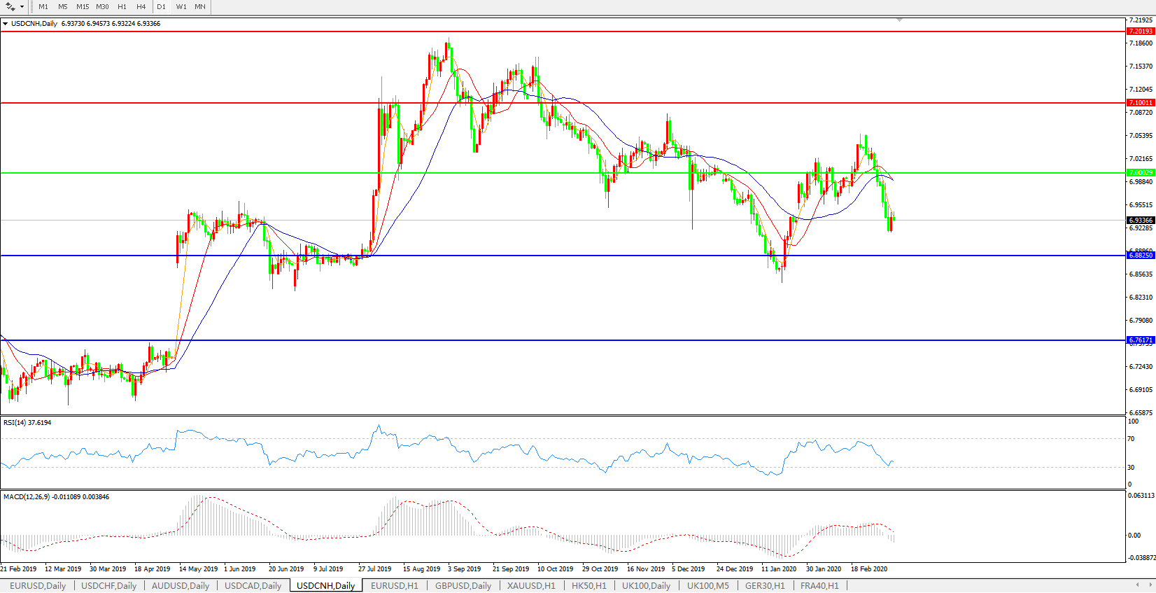 美元兑人民币USDCNH    日线图: