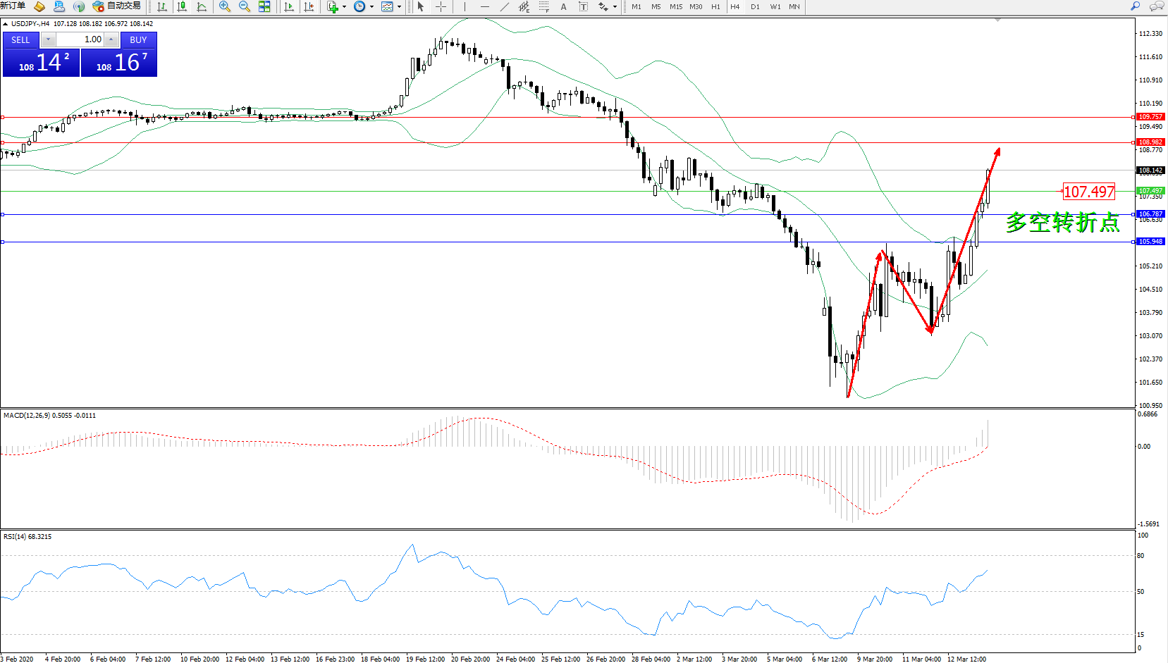 美元兑日元涨2.81%107.58;一度涨3.7%108.50;日本央行表示考虑到近期的不稳定走势,将采取措施以确保金融市场在3月底之前保持稳定,,美元兑日元本周上涨2.08%,录得2017915日当周以来最大单周涨幅。日本央行周五向市场释放流动性,也是日元最终走弱的因素之一。随着股市和美国收益率反弹,避险货币走低,那些想测试美元兑日元下跌趋势的人正在撤退,人们仍在争论是否要抓住下落的刀,所以你不能说日元上涨已经结束了。