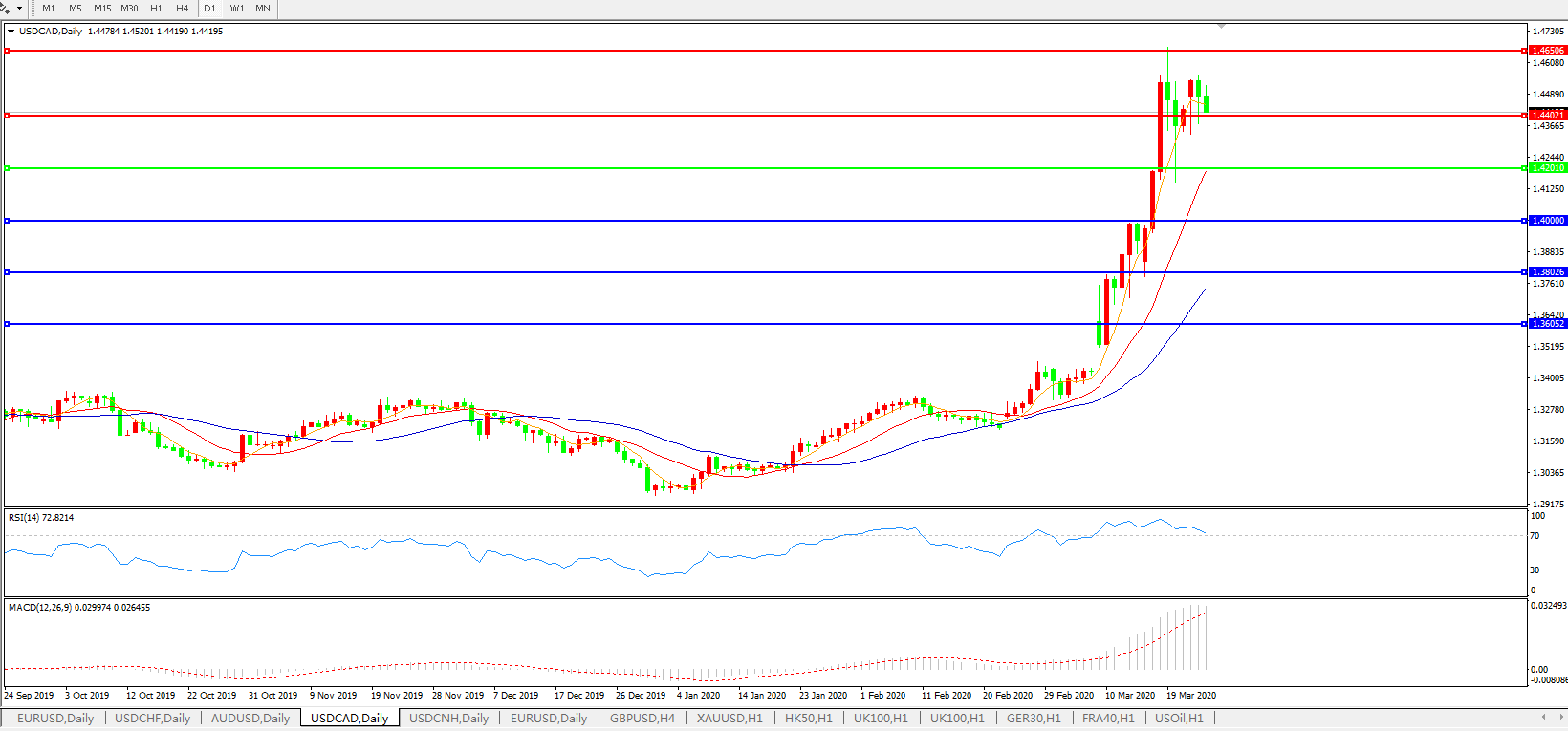美元兑加元USDCAD 日线图:
