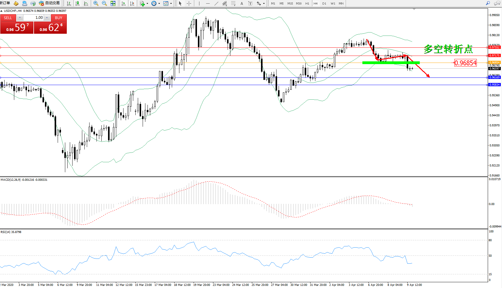 美元瑞郎USDCHF——4小时K线图显示:
