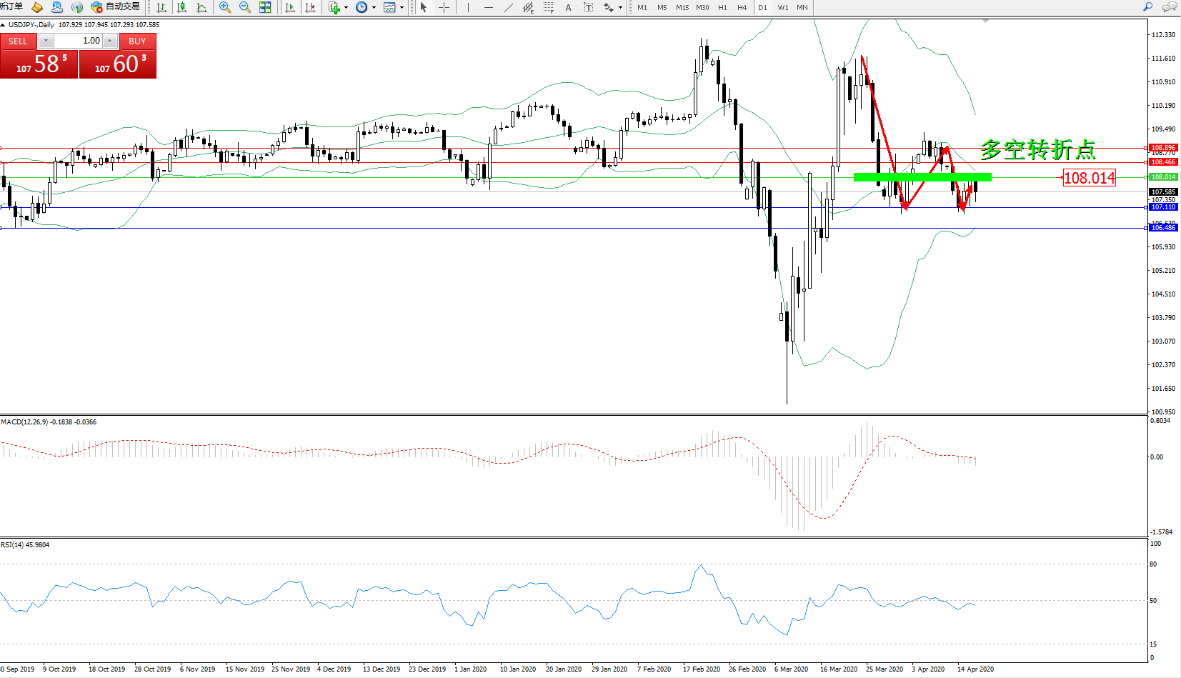 多空转折点:108.014