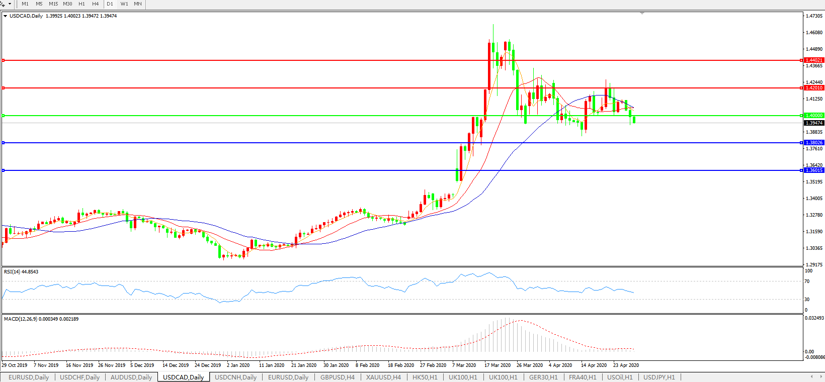 美元兑加元USDCAD    日线图: