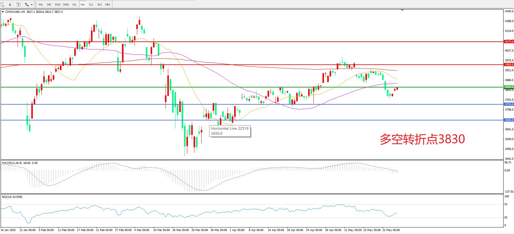 沪深300  CHINA 300   4小时图
