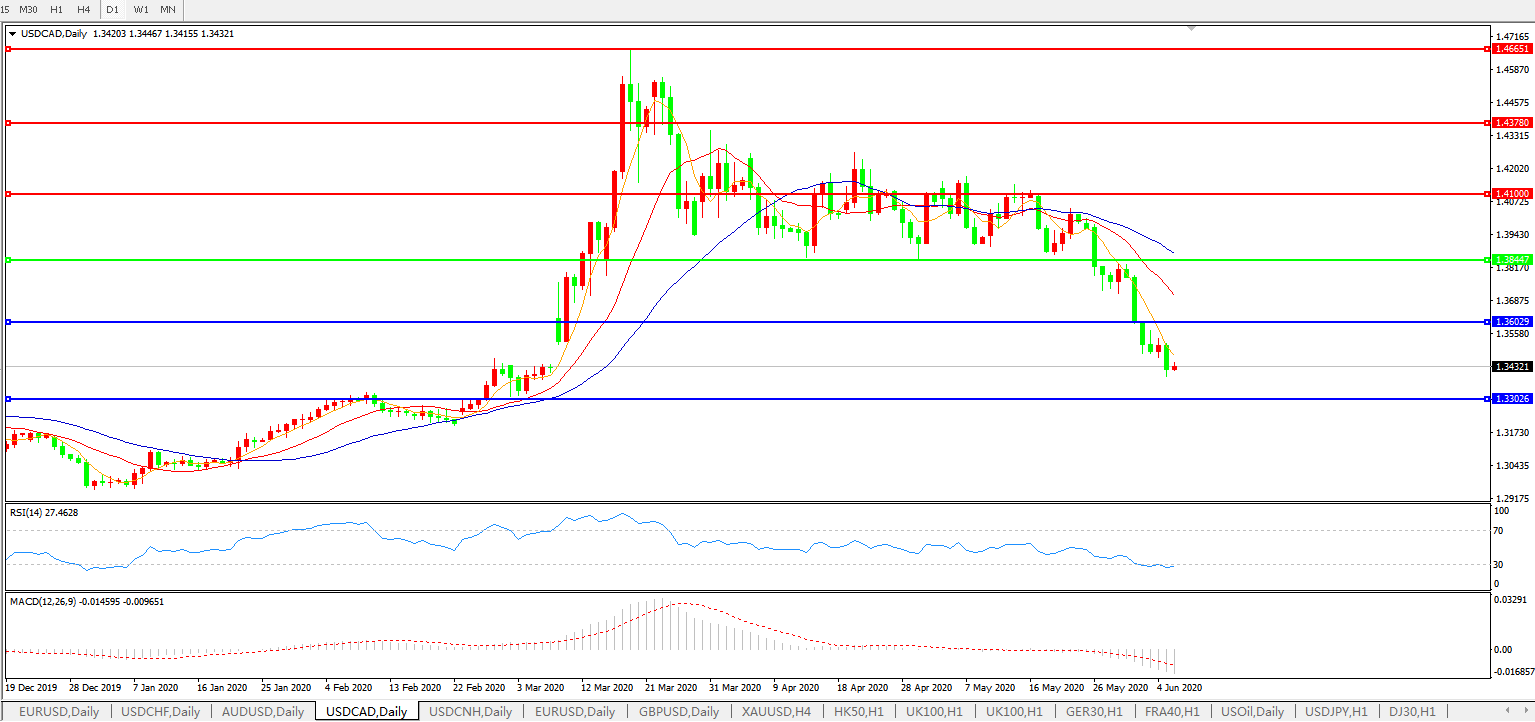 美元兑加元USDCAD 日线图: