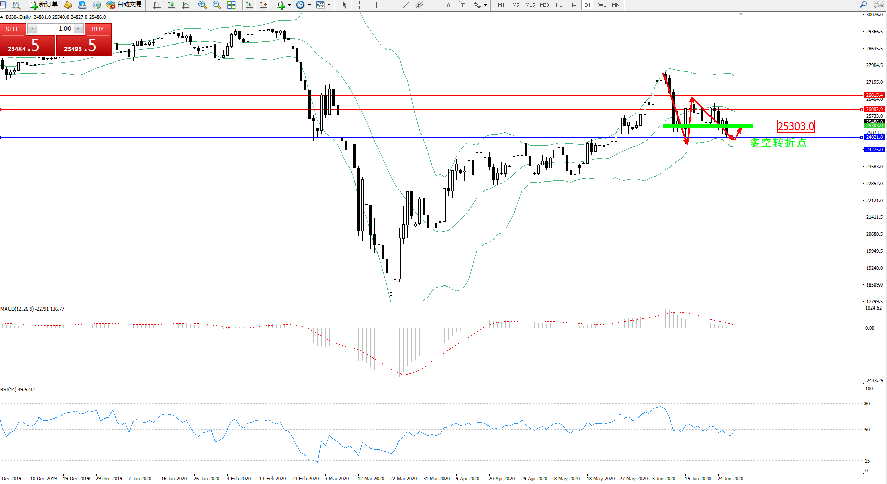 道琼斯指数6月29日(周一)收盘上涨580.30点,涨幅2.32%,报25595.80点。美国疫情加剧恶化,投资者担忧美国经济或再度停滞,美国的财政刺激计划没有更多进展,拜登领先美股大选,疫情二次爆发危机,股市二次探底风险,以及债券仍然受到市场追捧,前市场密切关注本周四的美国6月非农报告,本周三凌晨美联储主席鲍威尔证词。如果最终没有出台任何刺激措施,美股可能会再次暴跌20%。如果没有新的刺激计划,最小目标范围是下滑10%-15%。届时你会进一步观察政策动向,政策是否会立即行动起来。美国股市的反弹势头近来几周摇摆不定,而即将公布的美国经济数据,以及7月延长部分财政刺激措施的最后期限,可能是对这波反弹的关键考验。
