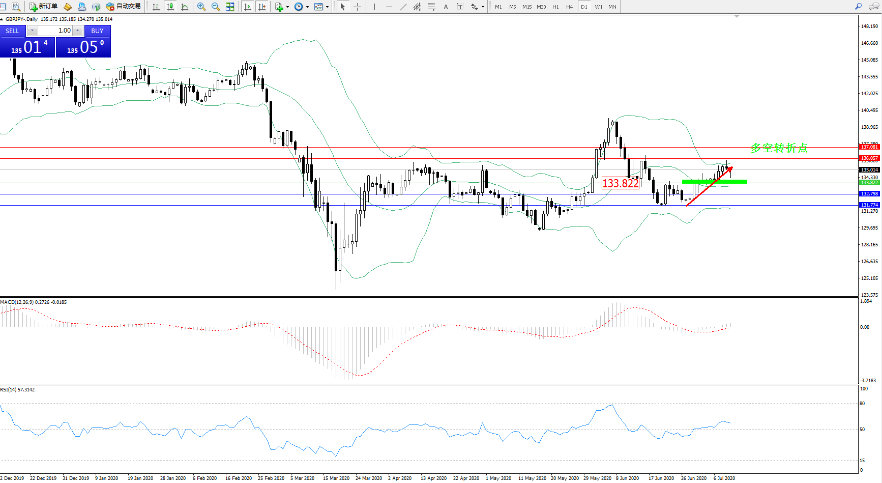 易策略:133.822上方看涨,目标136.057137.081