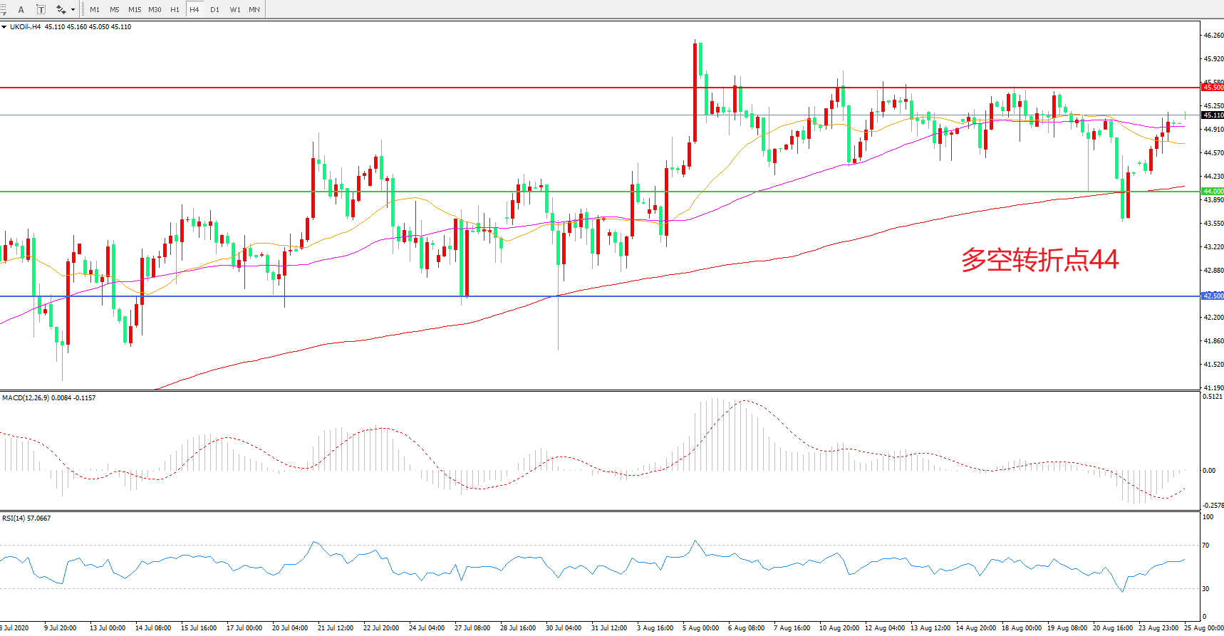 交易策略:  在44.00之上看涨,目标45.50      48.00