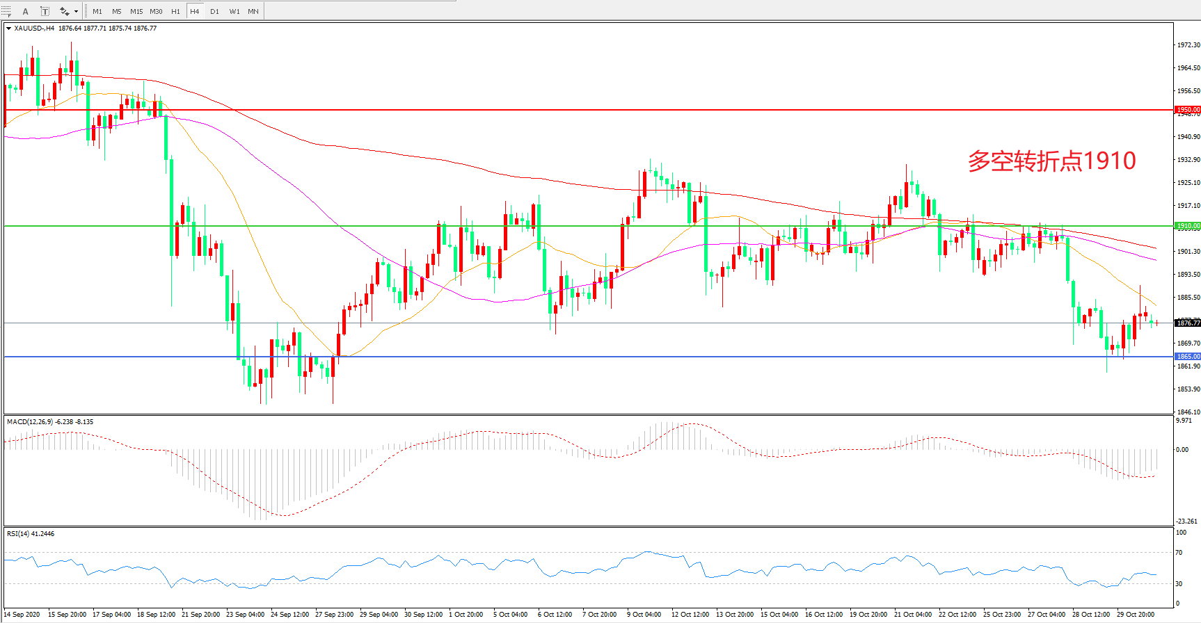 现货黄金XAU/USD    4小时图