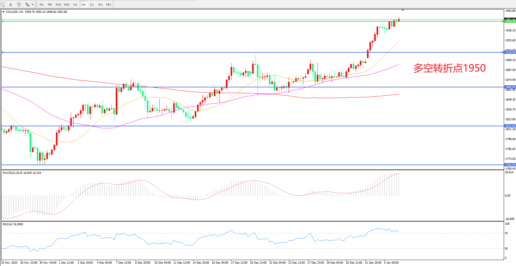 现货黄金XAU/USD 4小时图