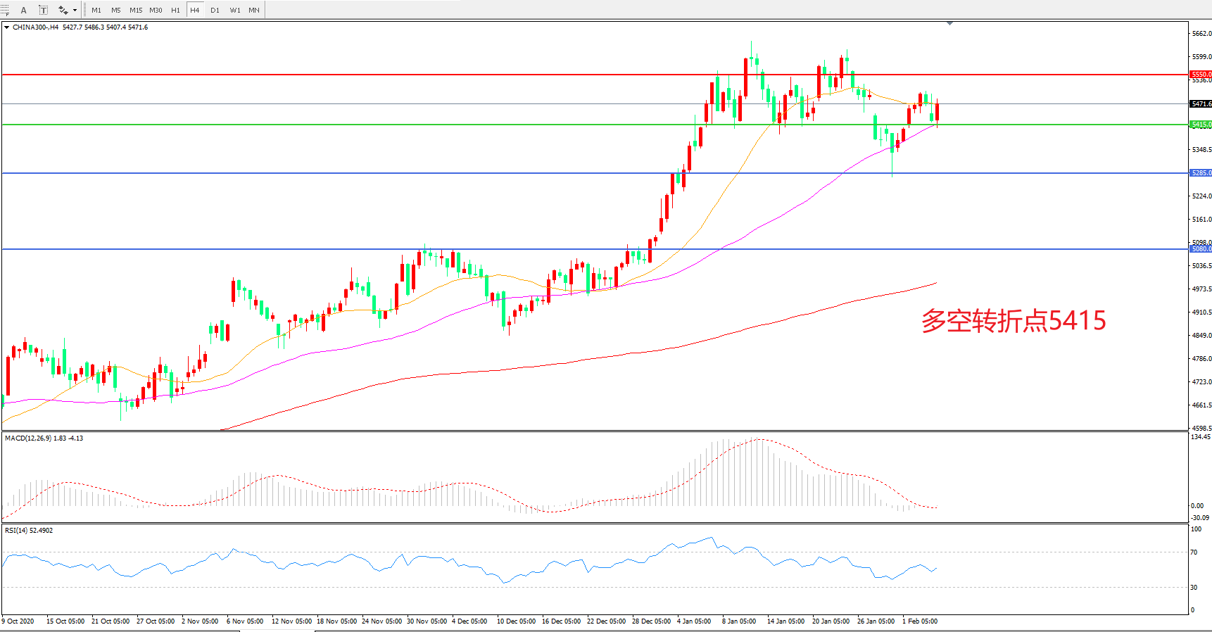 多空转折点:5415.00