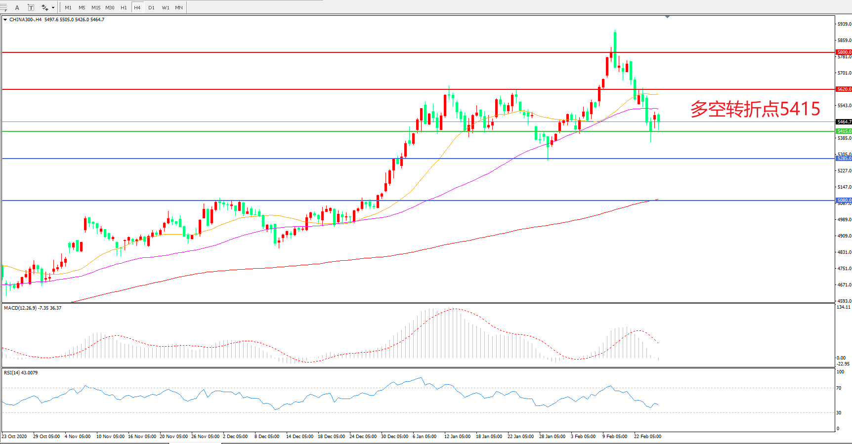 多空转折点:5415.00