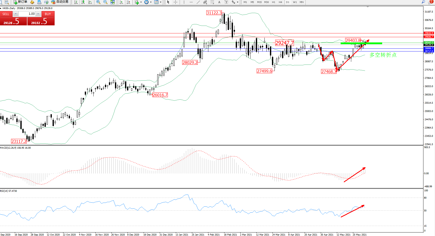 恒指HK50 ——日K线图显示: