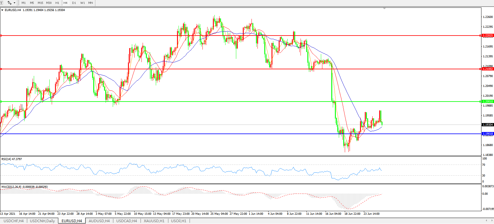 欧元兑美元EURUSD   4小时图: