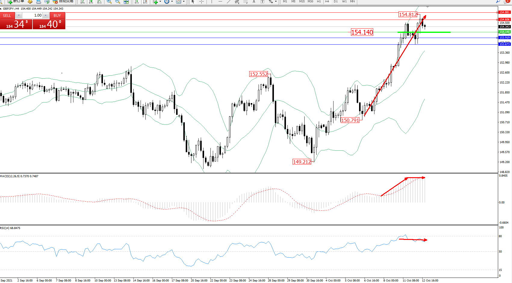 交易策略:154.140上方看涨,目标154.606、154.881