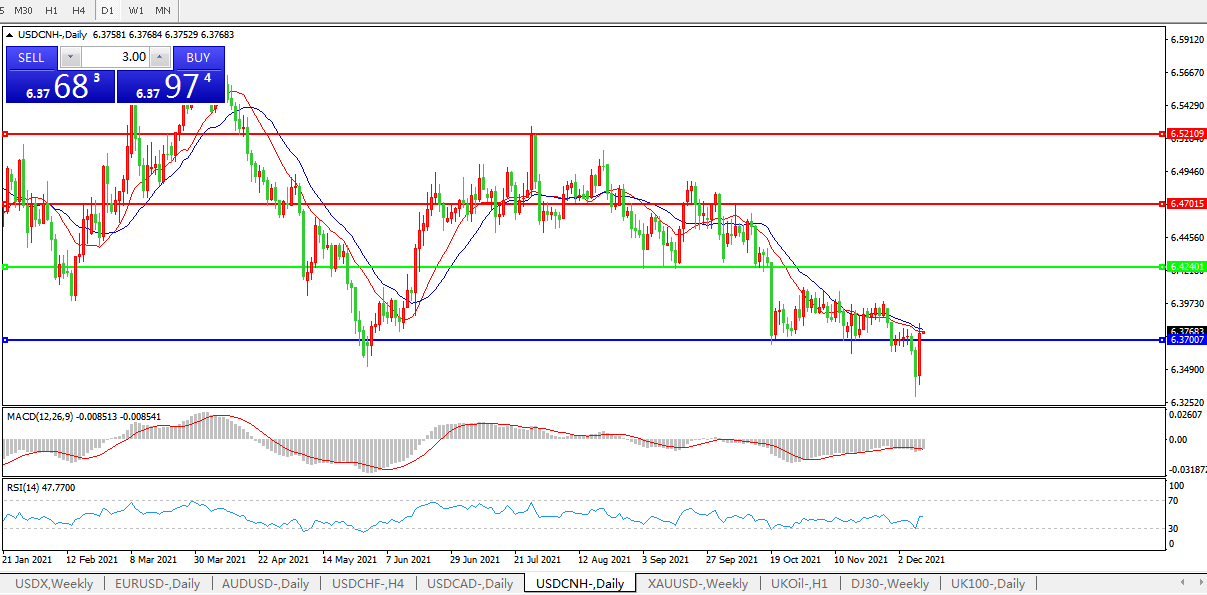 交易策略:在6.4240之下,看跌,目标价位为6.3700,然后为6.3000。