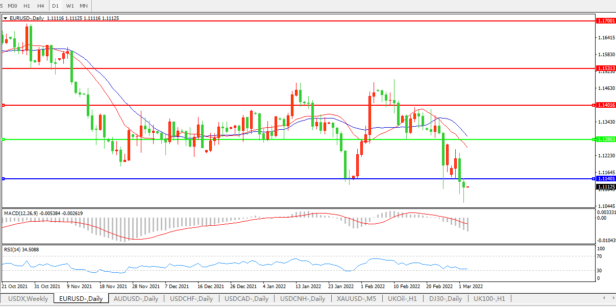 欧元兑美元EURUSD 日线图: