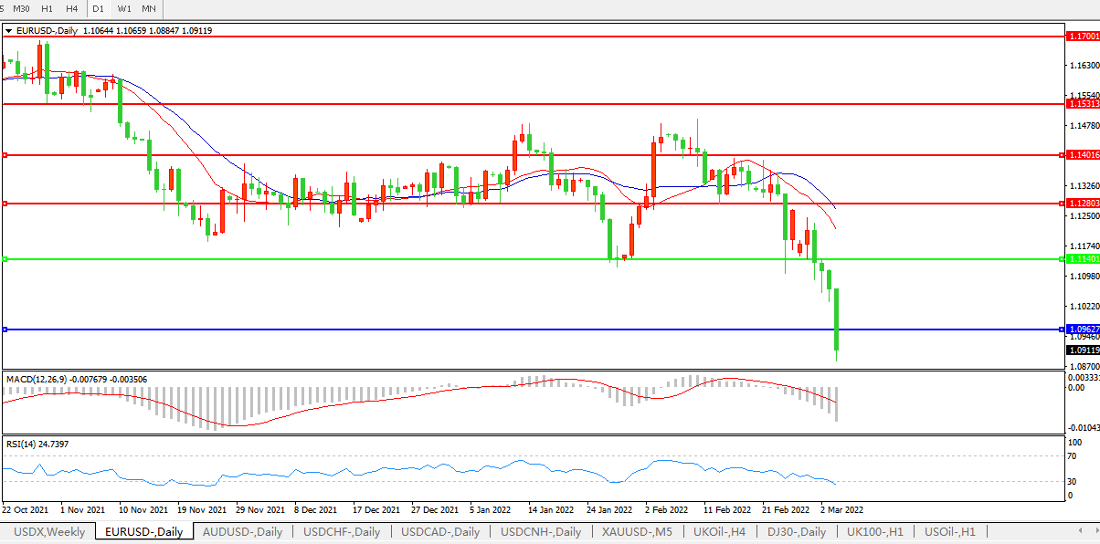 战争阴云笼罩欧洲,欧元兑美元持续下行