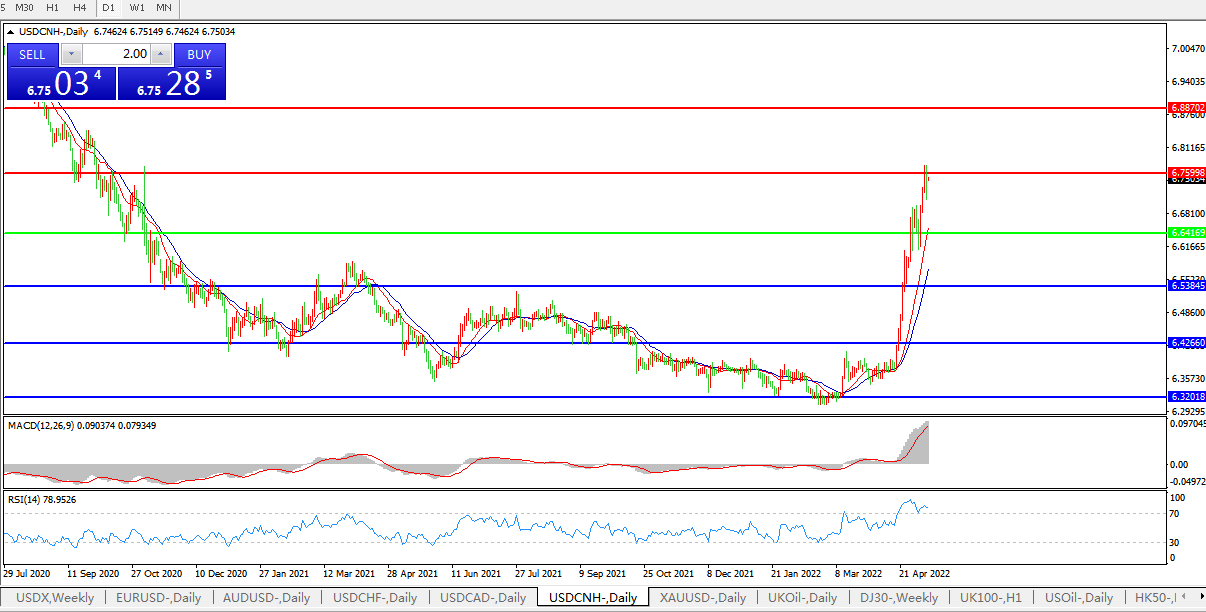 交易策略:在6.6416之上,看涨,目标价位为6.7600,然后为6.8870。