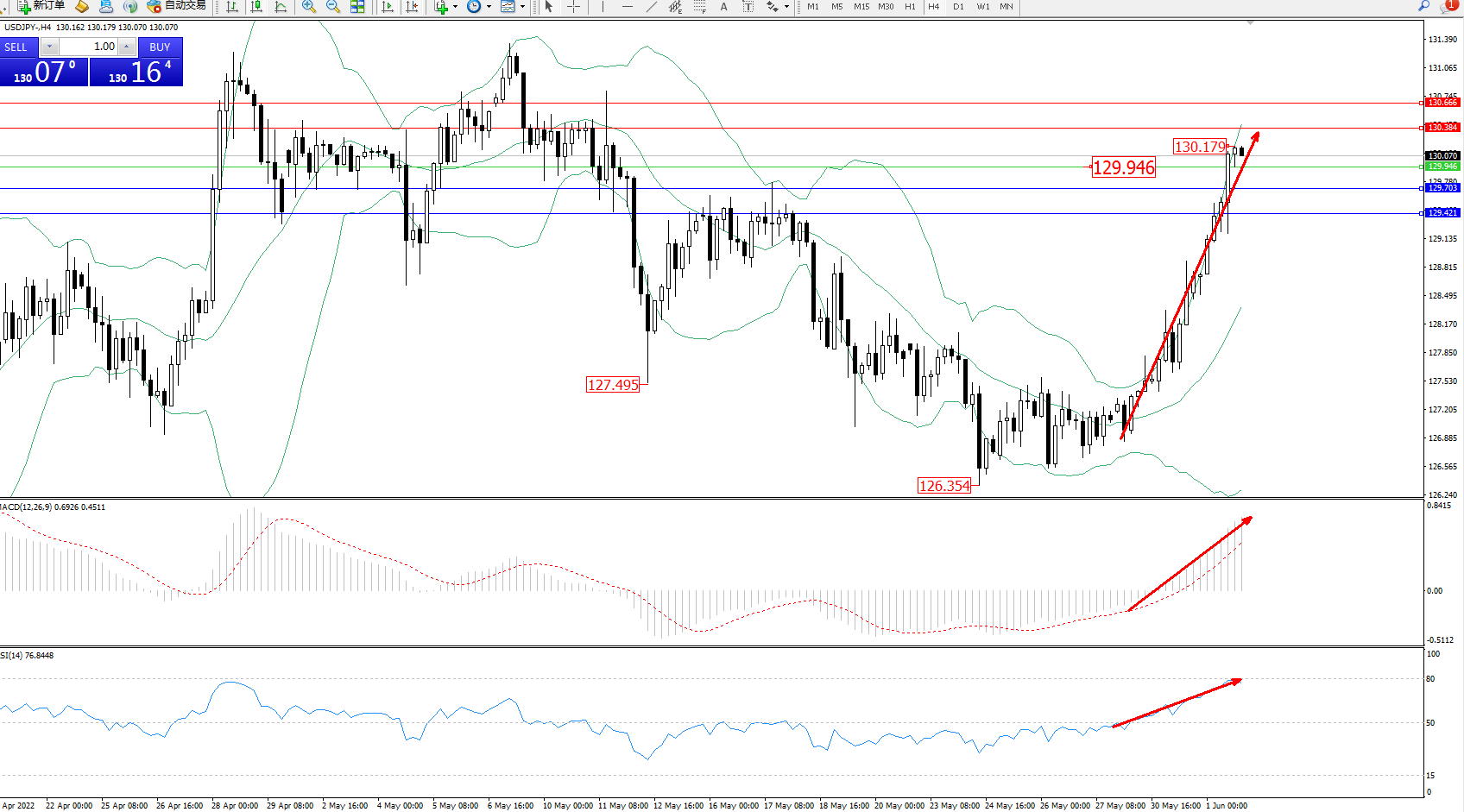 交易策略:129.946上方看涨,目标130.384、130.666
