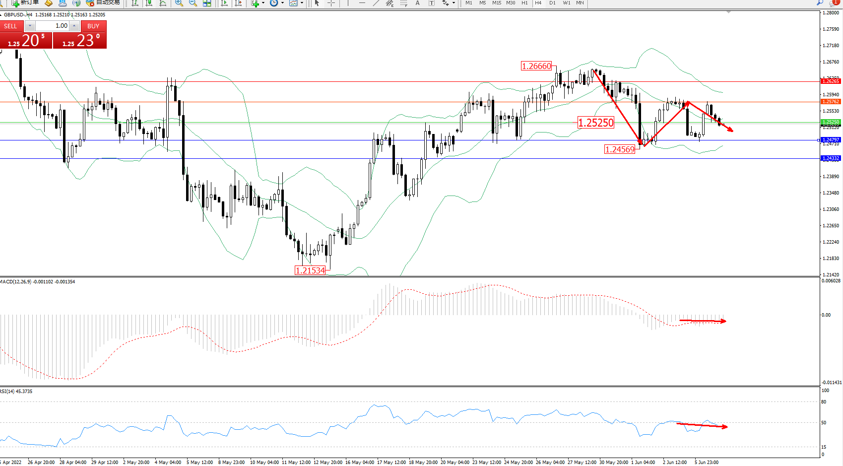 压制位:1.25762、1.26265