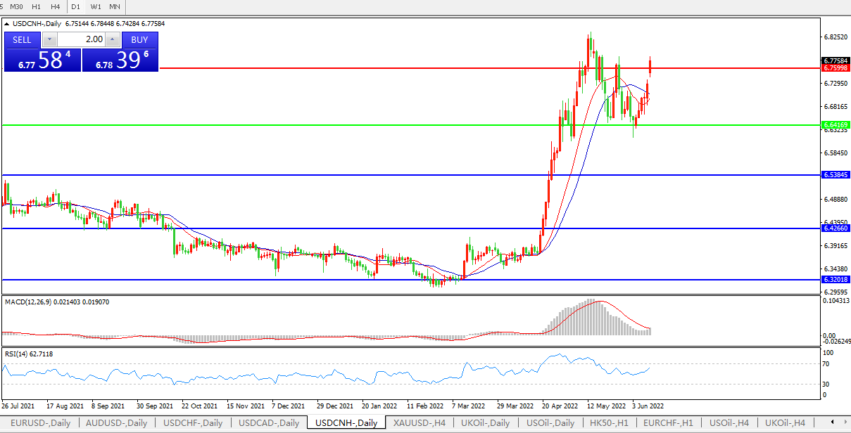 交易策略:在6.6416之上,看涨,目标价位为6.7600,然后为6.8870。