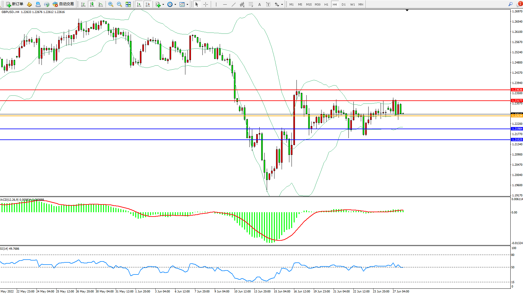 英镑美元GBPUSD ——4小时K线图显示: