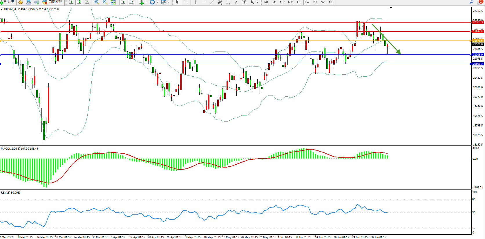 恒指HK50 4小时图