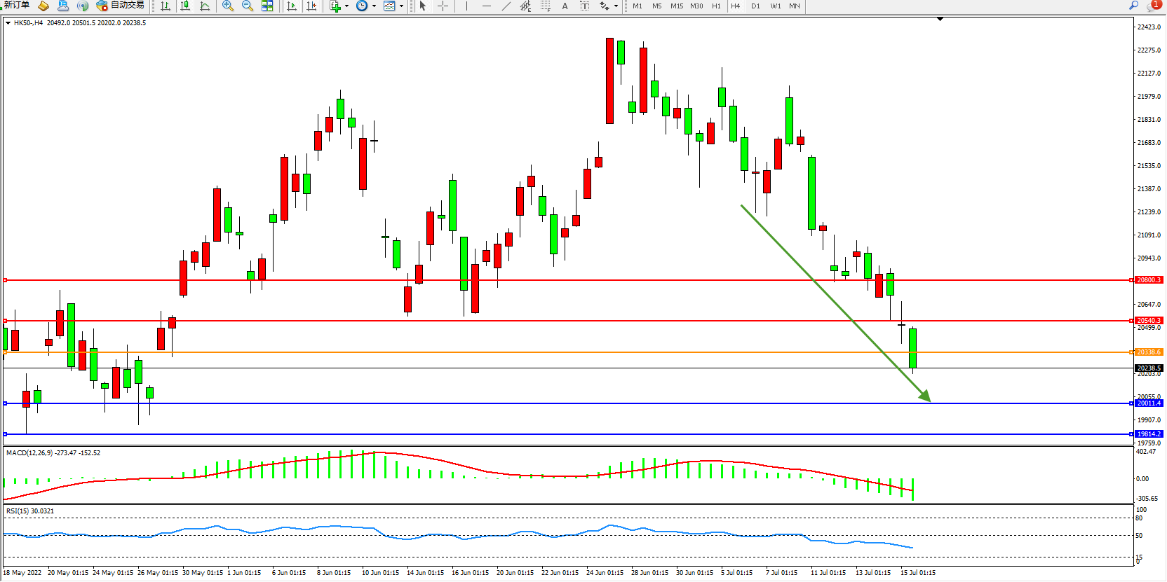 恒指HK50 4小时图