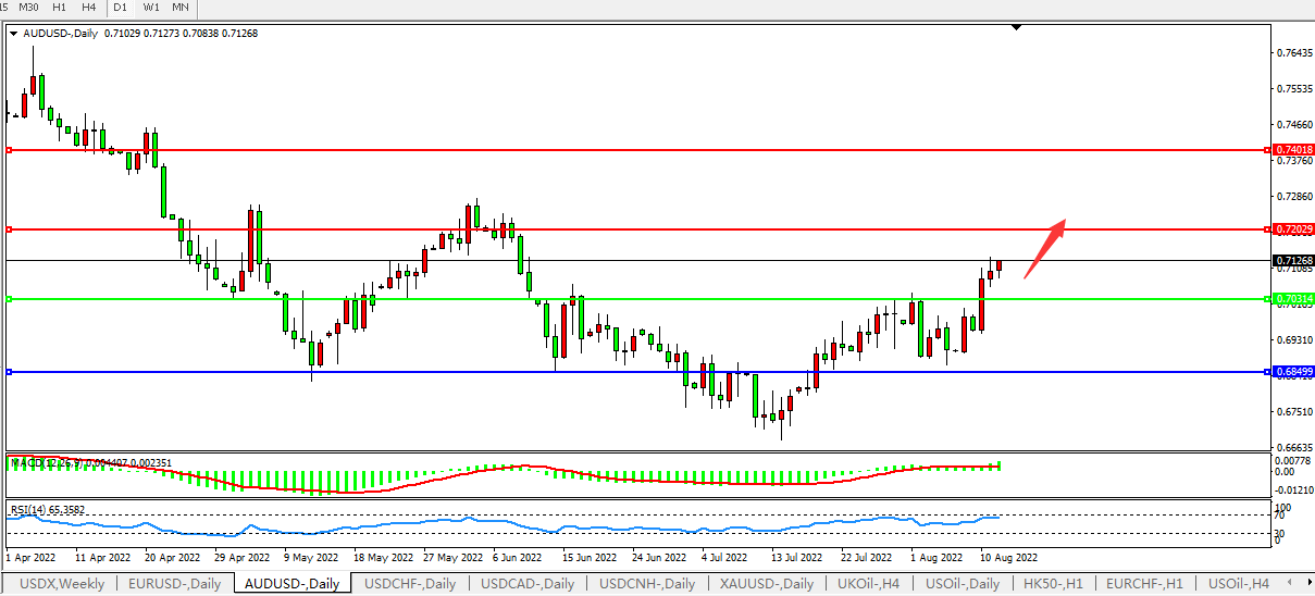 交易策略:0.7030上方看涨,目标0.7200、0.7400