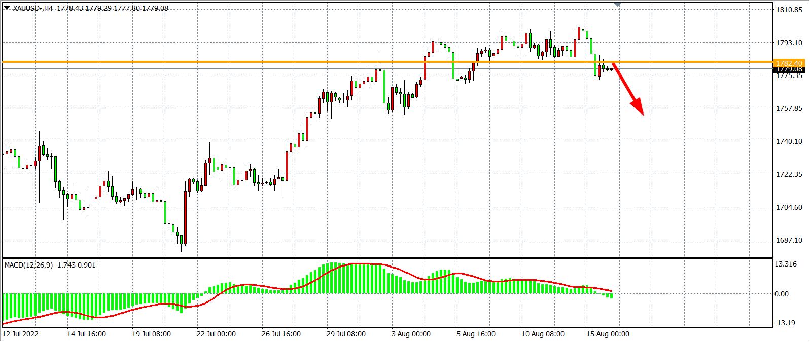 交易策略:在1782.00之下看跌,目标1770.00           1755.00