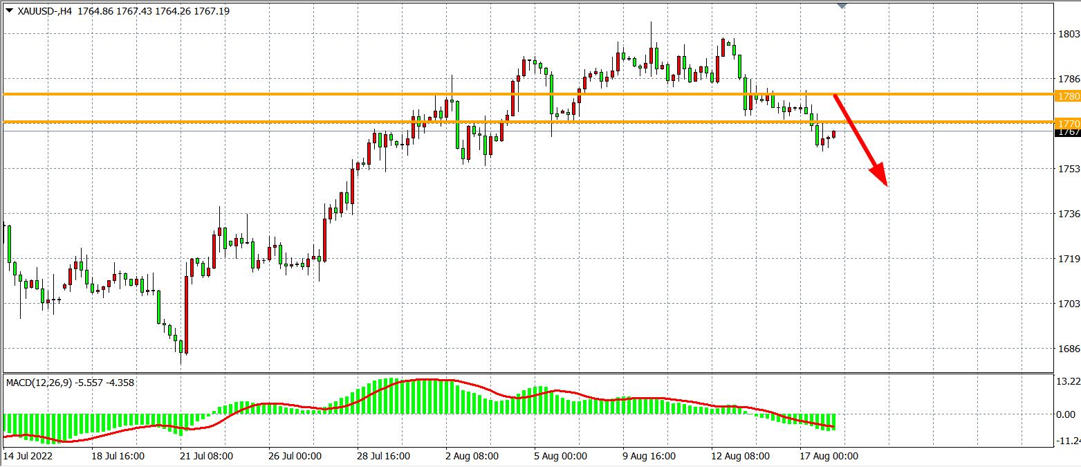 交易策略:在1770.00 之下看跌,目标1755.00 1738.00