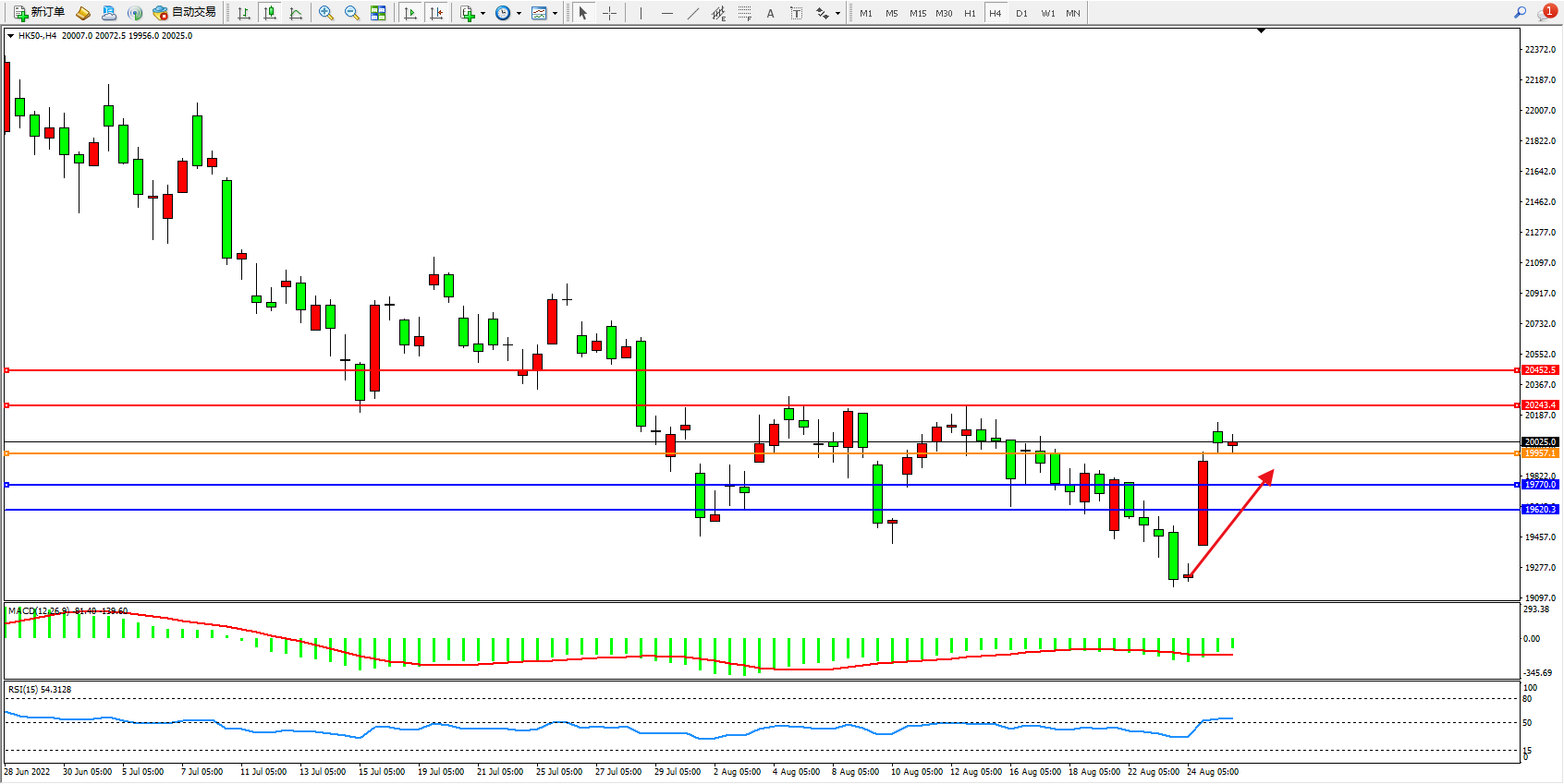 恒指HK50 4小时图