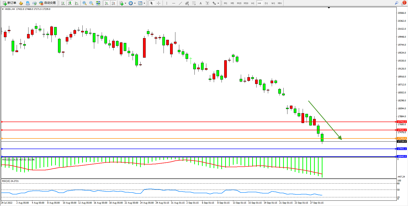 恒指HK50 4小时图
