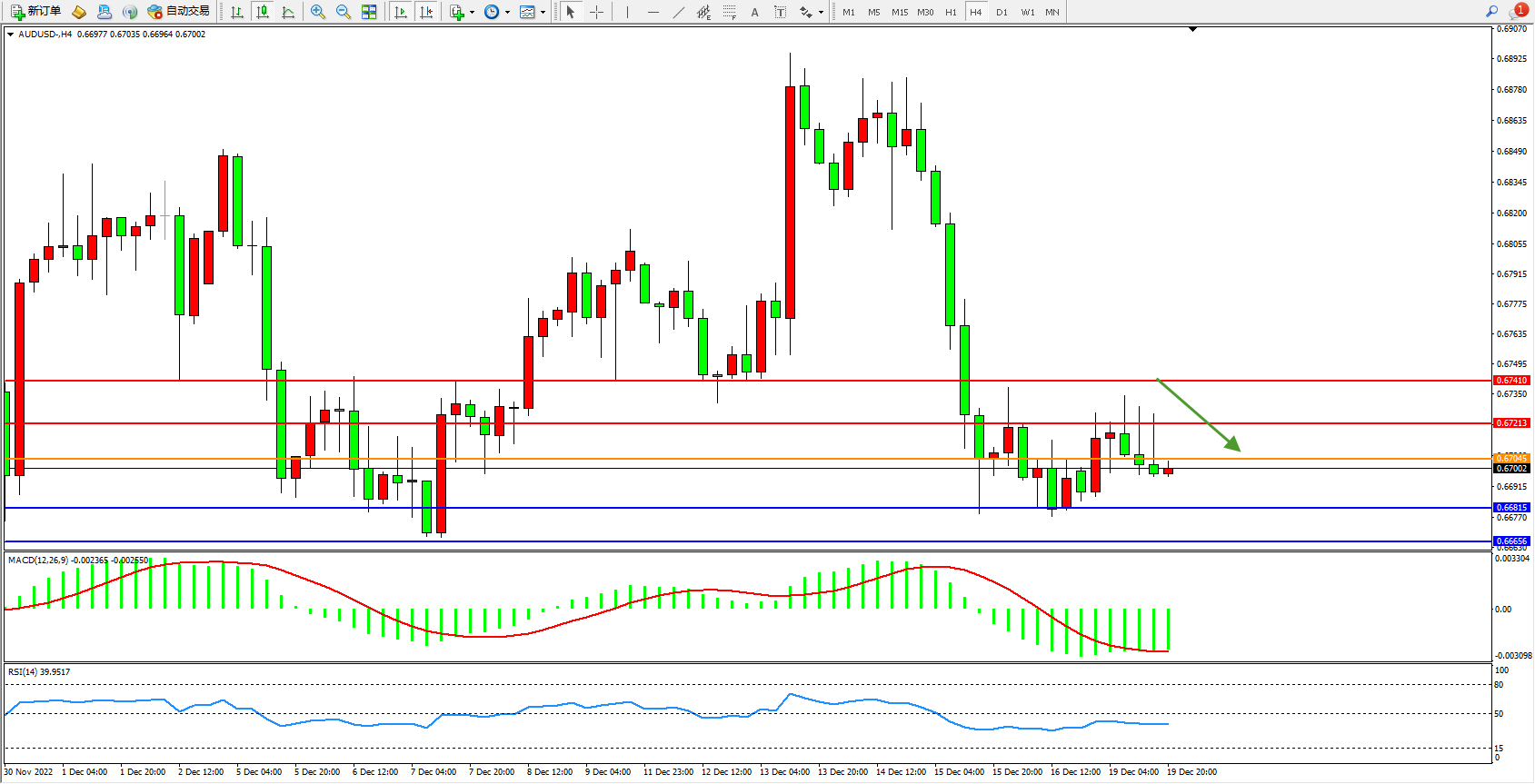 澳元美元AUDUSD——4小时K线图显示: