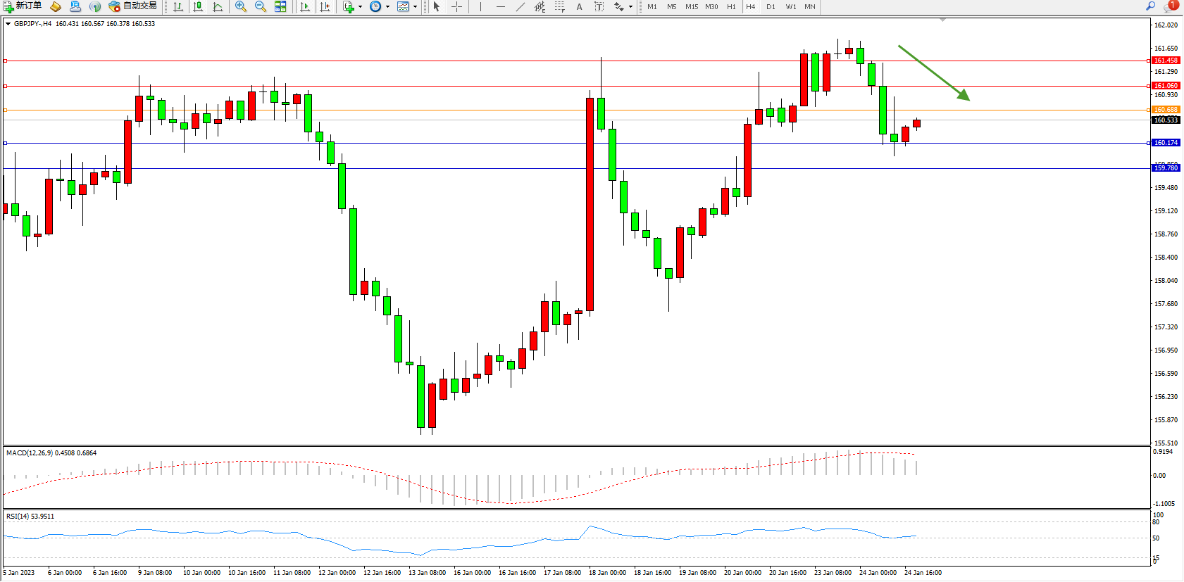 交易策略:160.688下方看跌,目标160.174、159.780