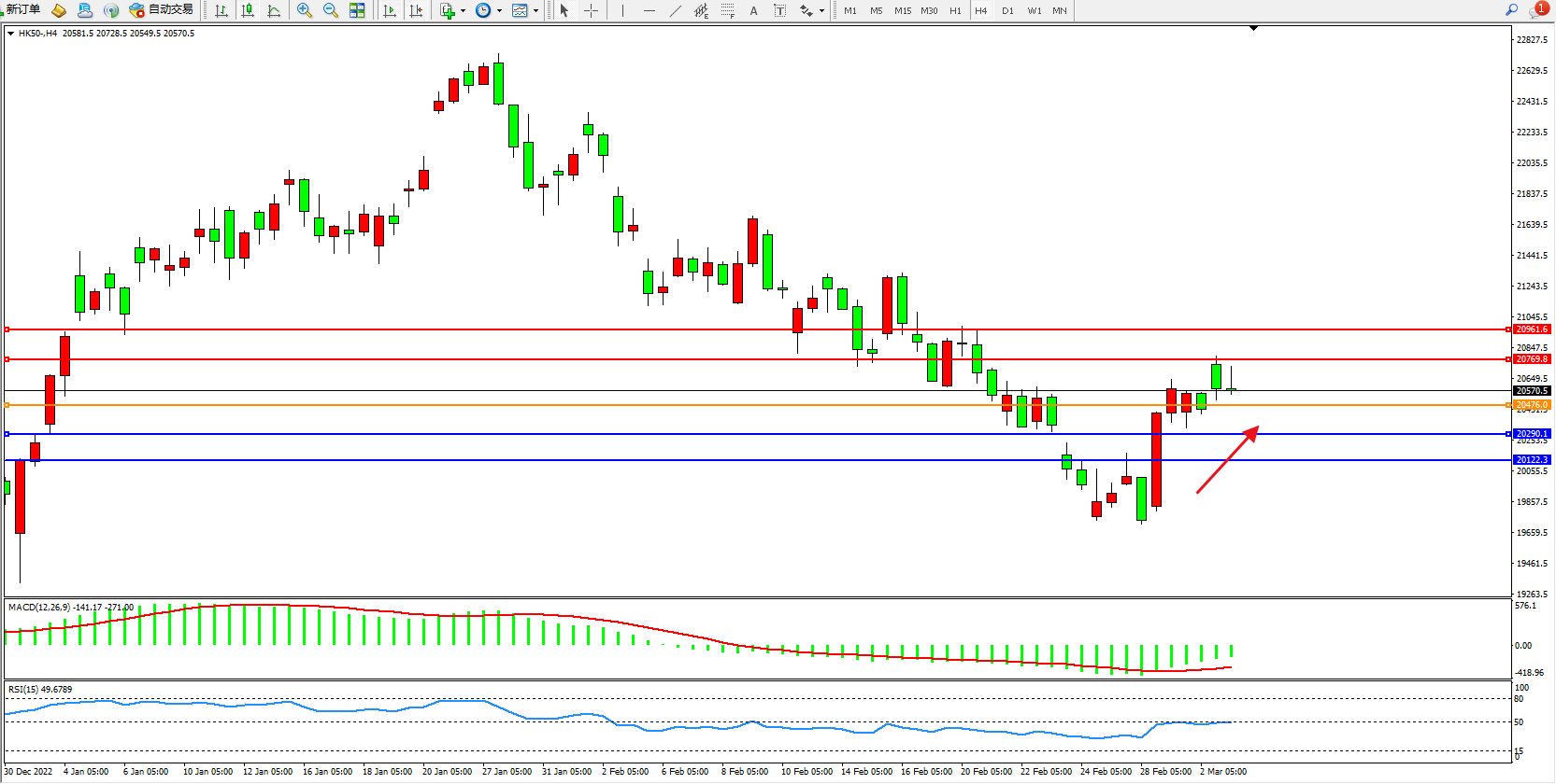 恒指HK50 4小时图