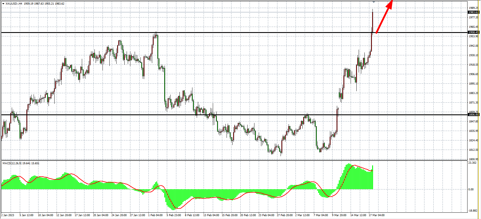 现货黄金XAUUSD四小时图