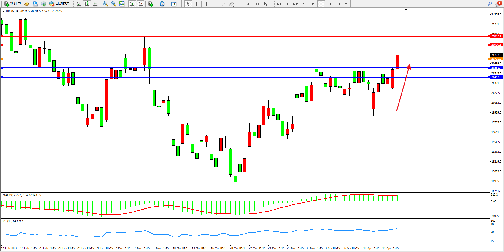 恒指HK50 4小时图