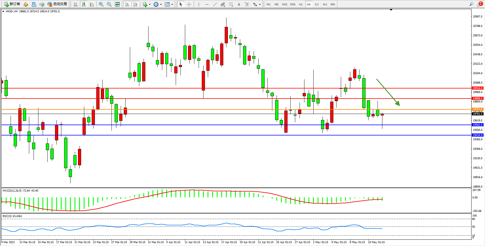 恒指HK50 4小时图
