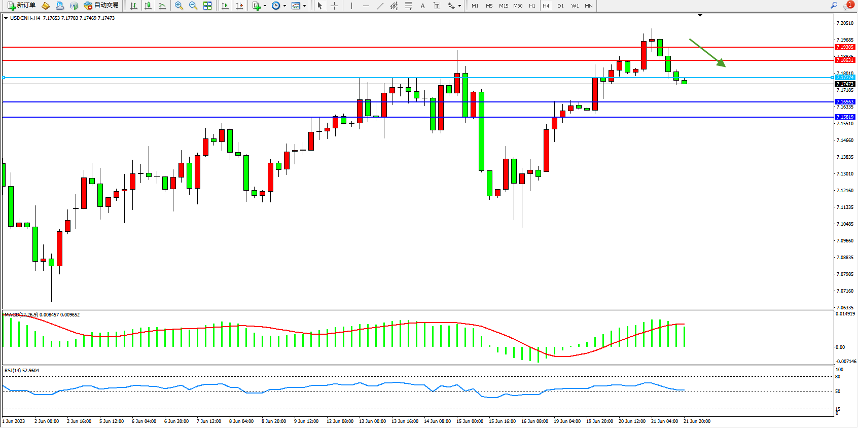 交易策略:7.17774下方看跌,目标7.16563 7.15819