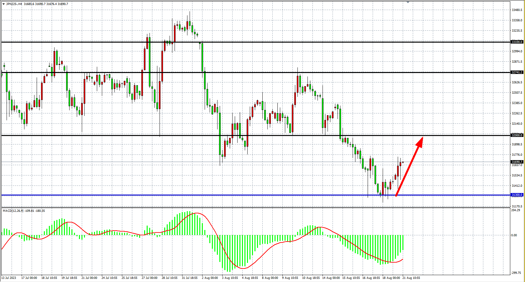 周一(8月21日)日经225指数收盘上涨90.00点,涨幅0.29%