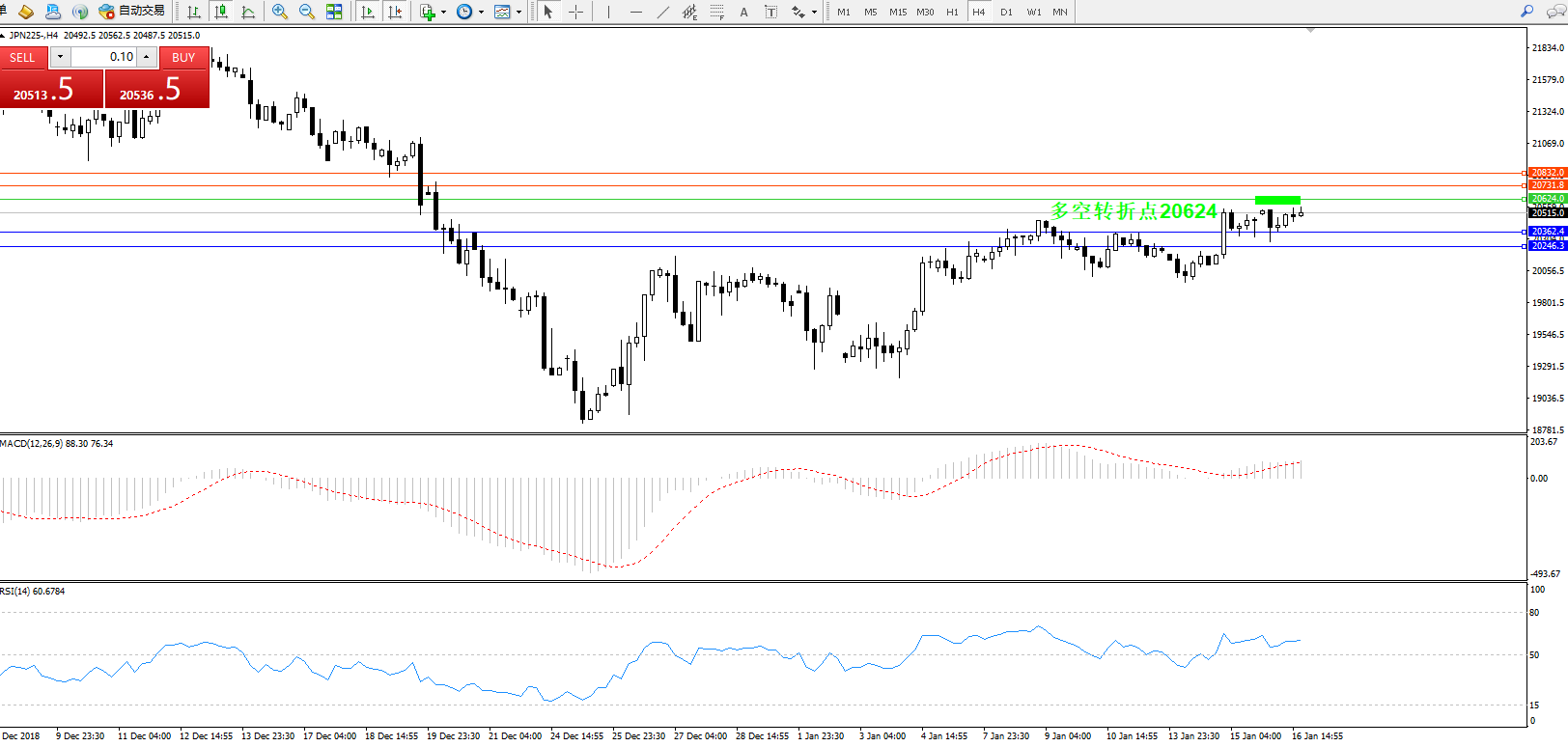 日经指数JPN225——4小时K线图: