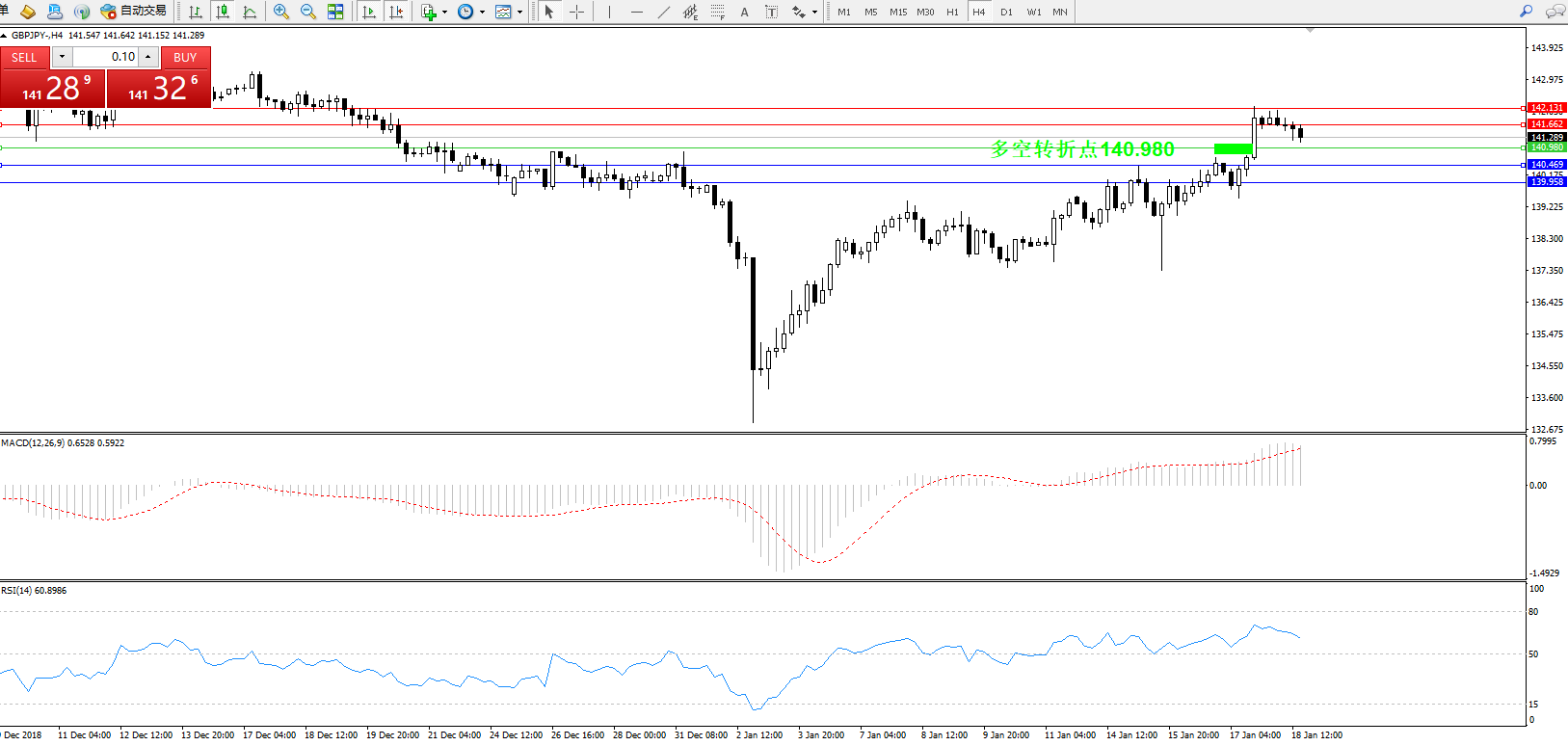 交易策略:140.980上方看涨,目标141.662、142.131