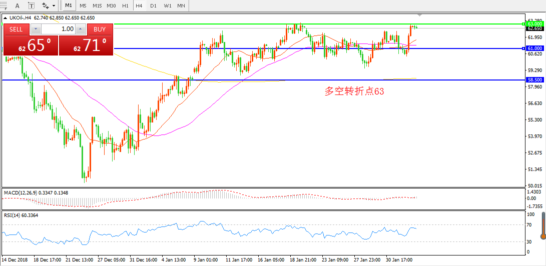 交易策略:在63.00之上看涨,目标66.00    68.00