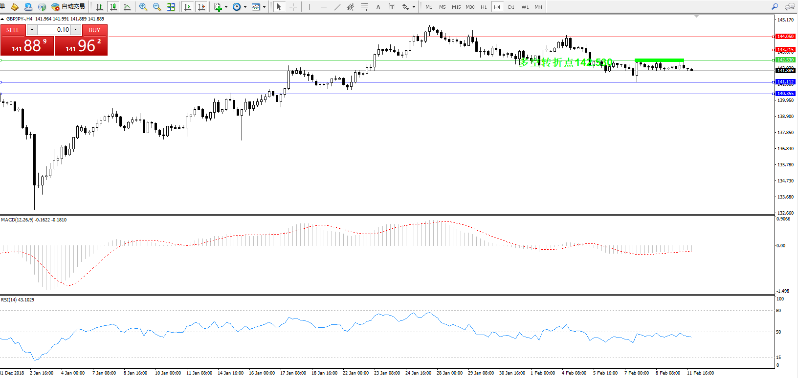 交易策略:142.530下方看跌,目标141.112140.355