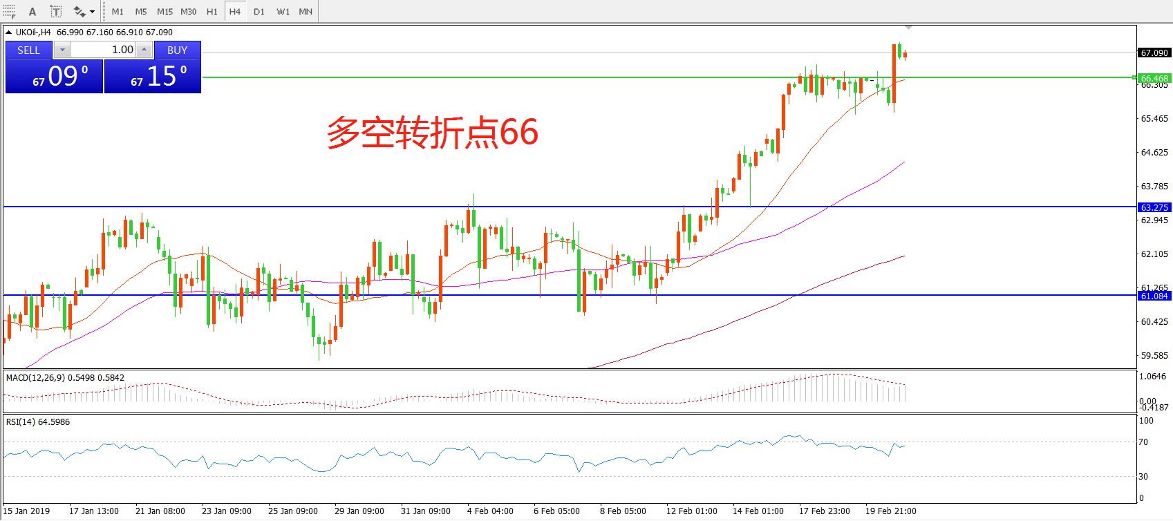 交易策略:在66.50之上看涨,目标67.00   70.00