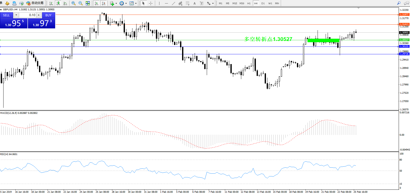 交易策略:1.30527上方看涨,目标1.31413、1.31977