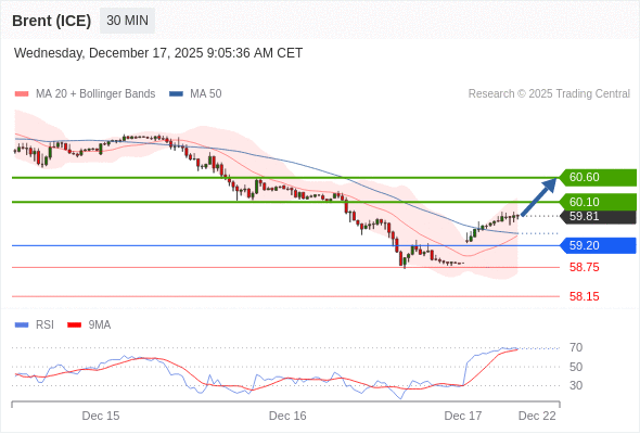 在 59.20 之上,看涨,目标价位为 60.10 ,然后为 60.60 。