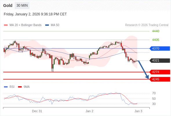 在 4370 之下,看跌,目标价位为 4274 ,然后为 4245 。