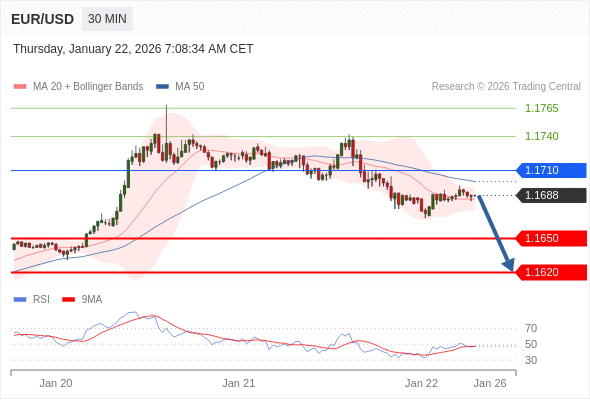 交易策略: 在 1.1710 之下,看跌,目标价位为 1.1650 ,然后为 1.1620 。